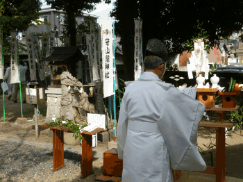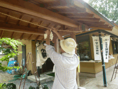 準備 前日の7月26日午前、30名程の氏子総代が夏祭りの諸準備をしました。人形代の受付 7月27日午前8時~