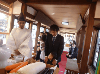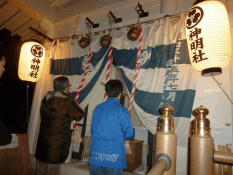 初詣参拝 (樽酒、枡酒、ぜんざい、粗品、お子様にはお菓子をふるまいました。 正月祭神事 |